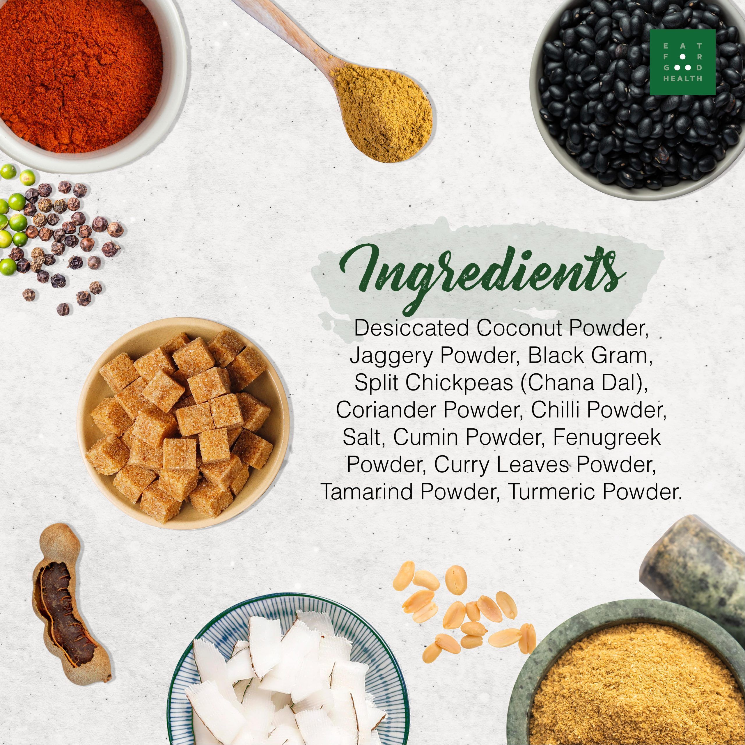 | INGREDIENTS: Desiccated Coconut Powder, Jaggery Powder, Black Gram, Split Chickpeas (Chana Dal), Coriander Powder, Chilli Powder, Salt, Cumin Powder, Fenugreek Powder, Curry Leaves Powder, Tamarind Powder, Turmeric Powder. COOKING DIRECTIONS: Take 500gm dosa rice batter. Add the Udupi Kitchen Kara Dosa Mix to the batter and mix well. Add salt to taste and dilute batter to dosa consistency.Optional – Add finely chopped cabbage, onions/spring onions to the batter. You can also dip sliced Eggplant or breadfruit in the batter and place in a circular form on a dosa pan (shape it round) and cook on both sides. Variations – If you don’t have dosa batter, soak 2 cups idli rice for 3 hours. Grind in a mixer to a smooth paste. No need to ferment, use immediately. |